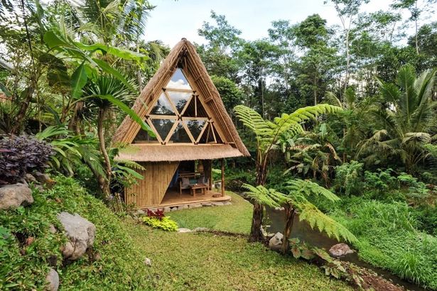 the mountains of the Gunung Agung volcano lies this breathtaking all-bamboo
